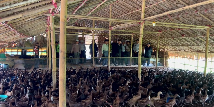 Subsequently, Chief Minister U Myo Swe Win visited U Min's farm in Kyaik Hla Village, where he successfully raises 2,200 egg-laying ducks with funding from the State Economic Promotion Fund. During the visit, he provided guidance to officials, noting that the Waw region possesses ideal natural conditions for duck farming. He instructed them to expand duck farming operations, and also to expand local chicken and pig farming to boost meat production.
