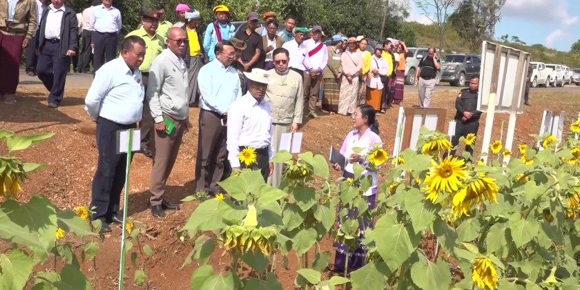 The Chief Minister coordinated the needs and inspected the chosen sites for cow breeding farm and construction of embankment. They later visited Phaya Phyu Village in Kyar Kone Village-Tract to observe the thriving of sunflower plantations for seeding purpose, and coordinated the needs for irrigated water and quality seeds. Kyar Kone Village-Tract has been established as the Smart Village by the Department of Rural Development in 2024-2025 fiscal year.