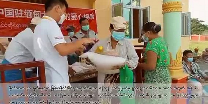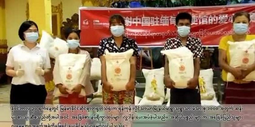 The Embassy of the People's Republic of China in Myanmar provided the packages of basic food supplies including rice, beans and cooking oil for 1,000 households in Hlaingthaya Township of Yangon Region on November 30.