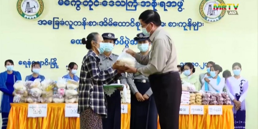 The basic foodstuff were provided to grass-root households at the Yay Nanchaung University in Magway Region.