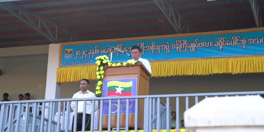 The Chief Minister also urged the athletes to train continuously to improve skills and develop modern sports techniques. And, he ceremonially opened the football tournament, provided sports gear and enjoyed the 1st match between the Thayet District Team and the Aunglan District Team.