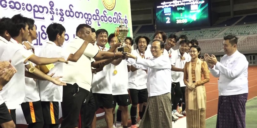 The final match and prize awarding ceremony of the 2024 Inter-University Football Tournament, organized by the Ministry of Health, Medical Universities, and Medical related Universities, was held at Wunna Theikdi Sports Complex football field in Nay Pyi Taw on 2nd October.