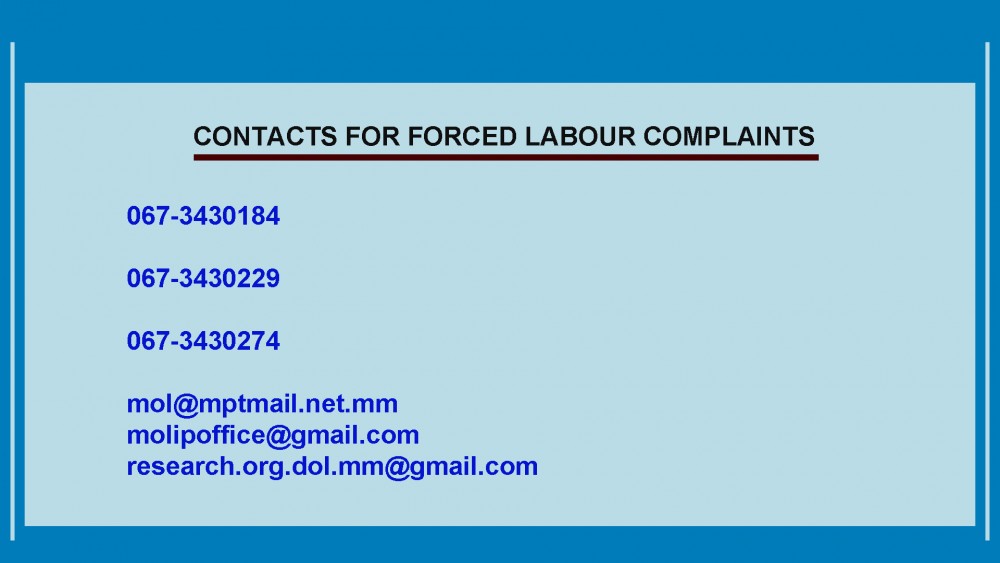 Myanmar has been cooperating with the ILO in solving forced labour complaints by establishing a complaint mechanism in 2007.