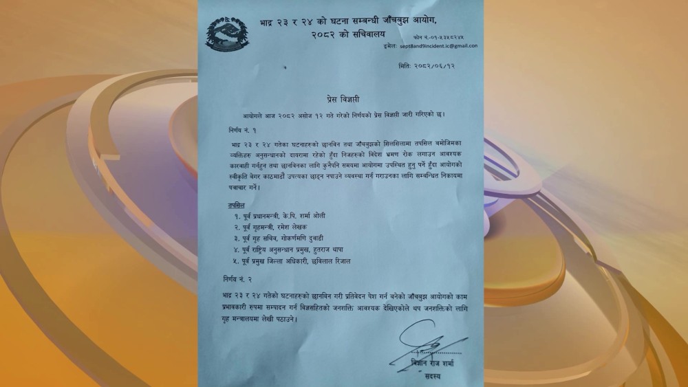 The Judicial Commission that is formed to probe the recent protest’s incidents has recommended a foreign travel ban on five individuals, including former Prime Minister KP Sharma Oli. The Commission decided to request the relevant authorities to restrict their travel abroad as investigations are ongoing.