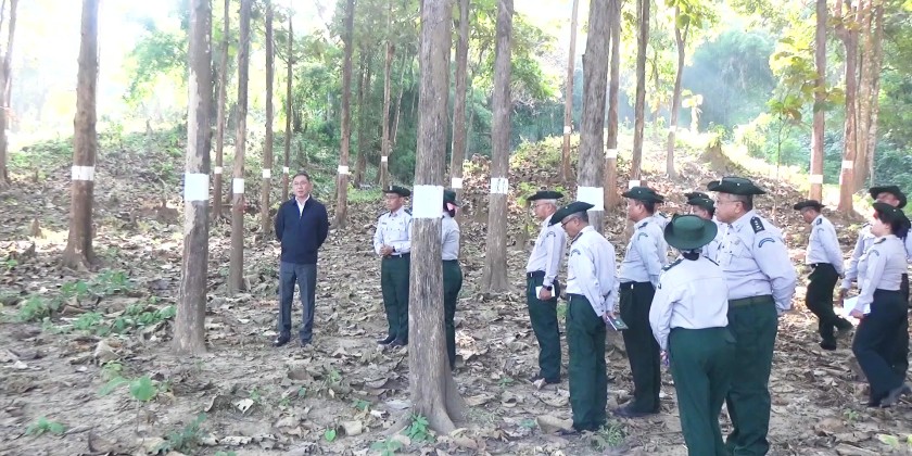 Union Minister for Natural Resources and Environmental Conservation U Khin Maung Yi on Friday, visited forestry trainees from Myanmar Forestry School Batch No. 119 who are undergoing field training at the Forest Research Station No. 5, Moe Swe in Nay Pyi Taw.