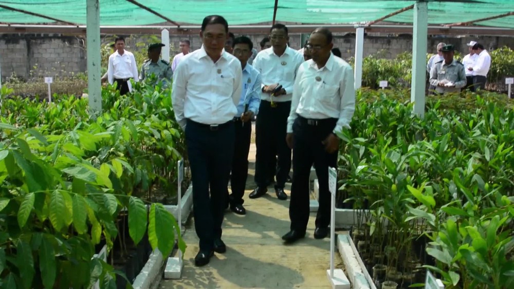 The Union Minister for Natural Resources and Environmental Conservation U Khin Maung Yi together with Shan State Chief Minister U Aung Aung visited Haung Leik Forest Nursery Garden in Tachileik Township, Shan State (East) in the afternoon on 10th March the responsible officials clarified the district and Township Forest data and work implementation.