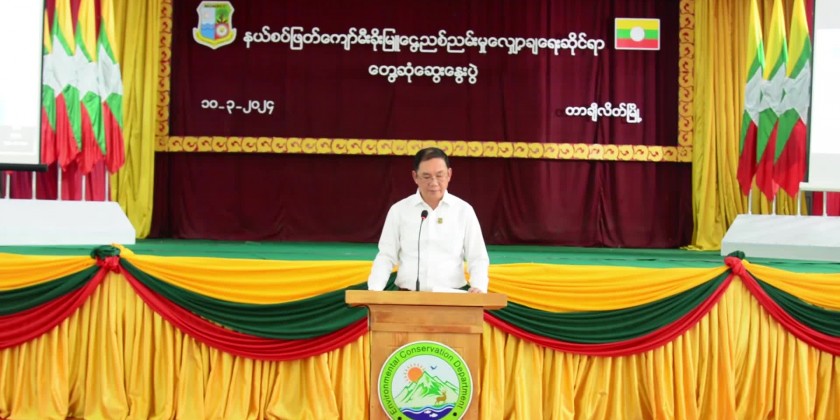 Next, the Union Minister, Shan State Chief Minister, State Ministers and officials attended the meeting on mitigation and controlling Transboundary Haze Pollution held at Aung Myat Hall in Tachileik Township.