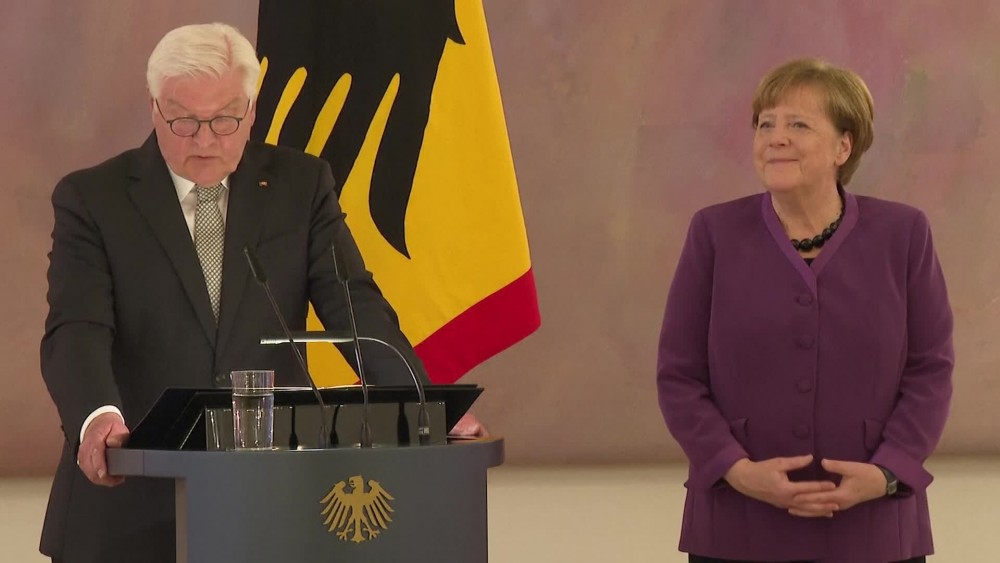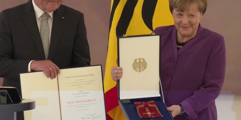 Former Chancellor Angela Merkel was presented with Germany's highest honour on Monday in recognition of her near-record 16 years at the helm of the country. President Frank-Walter Steinmeier awarded the Grand Cross of the Order of Merit for special achievement on the four-term chancellor, who became only the third ex-leader to receive that level of distinction.