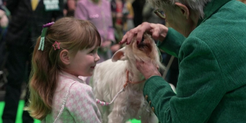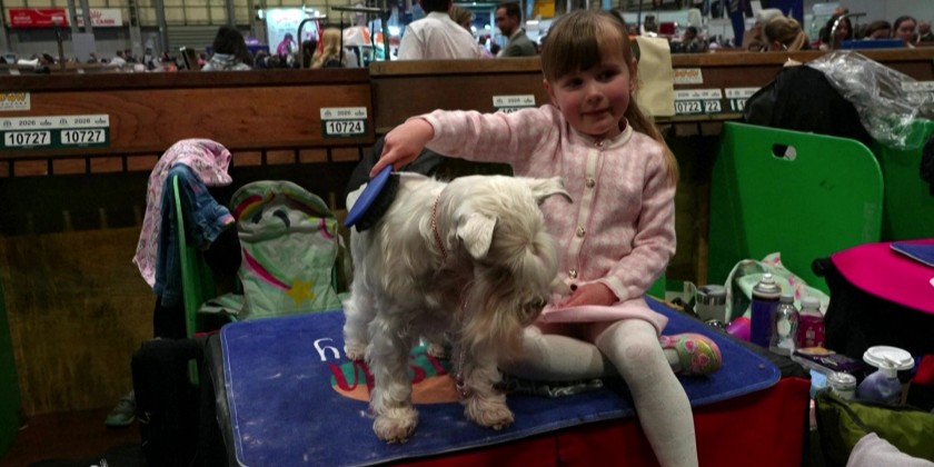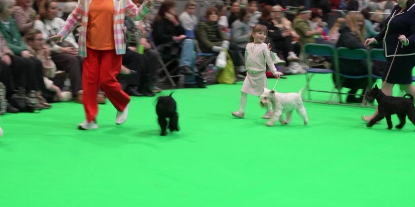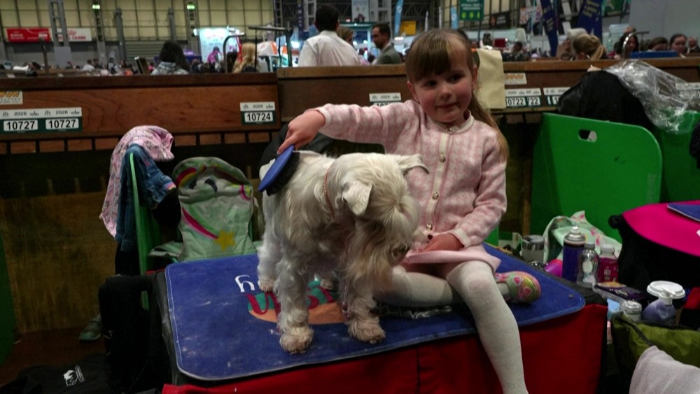 A four-year-old girl competed with her miniature Schnauzer, twice her age, at Crufts, the largest dog show in the United Kingdom. "Caitlyn got involved when she was eight weeks old," said her mother, who breeds Lyzahro Schnauzers and has been competing in dog shows since she was ten. More than 20,000 dogs are taking part in the four-day showcase in Birmingham.