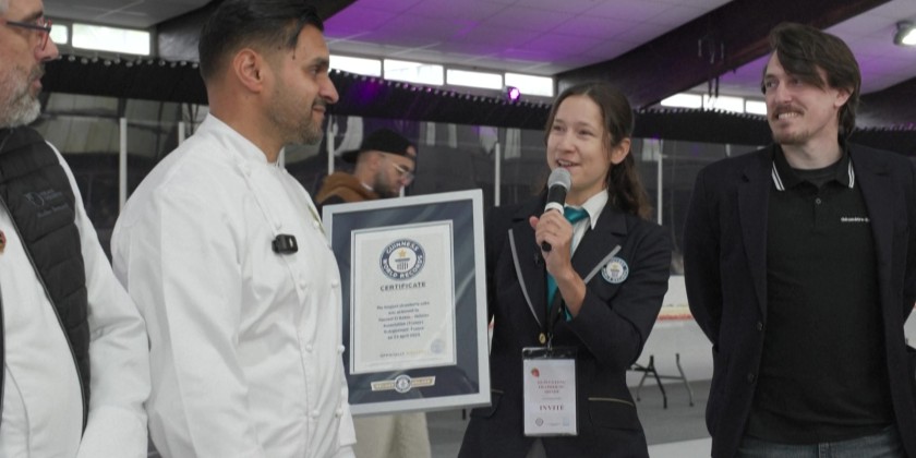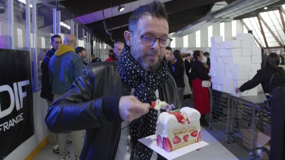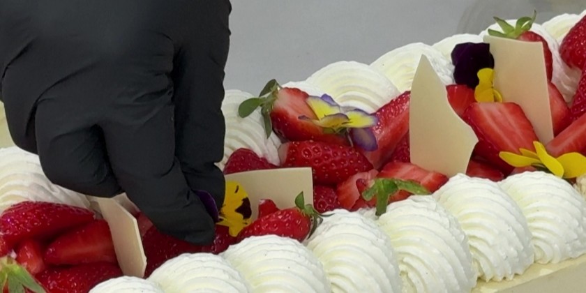 Some 350 kilos of strawberries, 150 kilos of sugar, 415 kilos of crème pâtissière (a thick, cold custard) and 4,000 eggs: a pastry shop in Argenteuil has beaten the record for the world's largest strawberry cake, with a cake certified at 121.88 meters long. With this record, certified by a Guinness Book of Records referee, France regains the world record for the longest strawberry cake, held since 2019 by Italy with a 100.48 m cake.