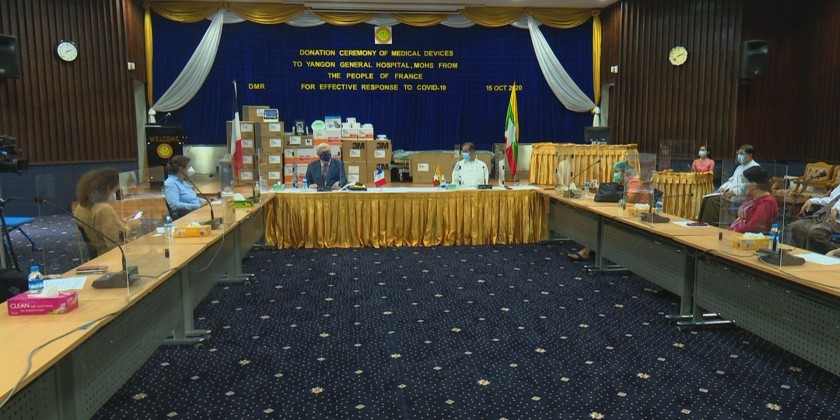 Director General, Department of Medical Research (Yangon), Dr. Zaw Than Htun said “Such donated medical devices are major weapons to save the lives of COVID-19 severe patients. I’d like to say a big thank you to the French people for this donation of important devices at this time when COVID-19 infection and mortality rate are on the increase in Myanmar.”