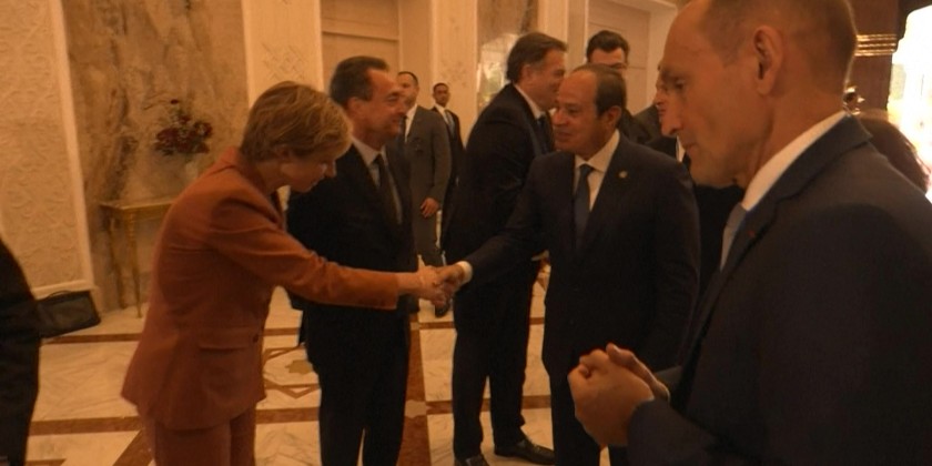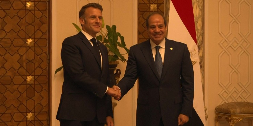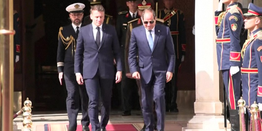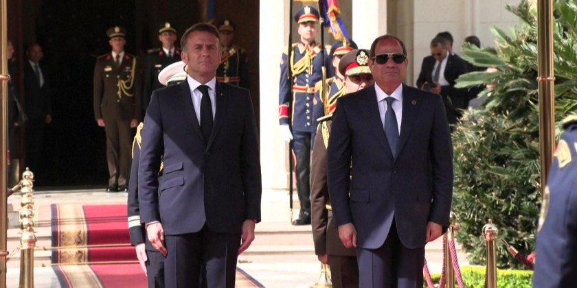Egyptian President Abdel Fattah al-Sisi and French President Emmanuel Macron attended a formal welcome ceremony at the presidential palace in Cairo on Monday, ahead of a high-level summit on the Gaza crisis.