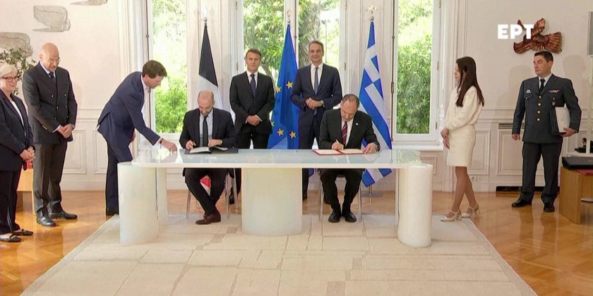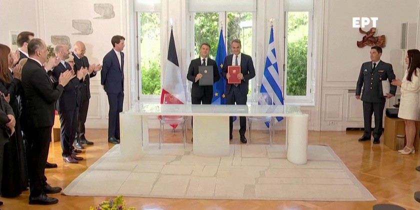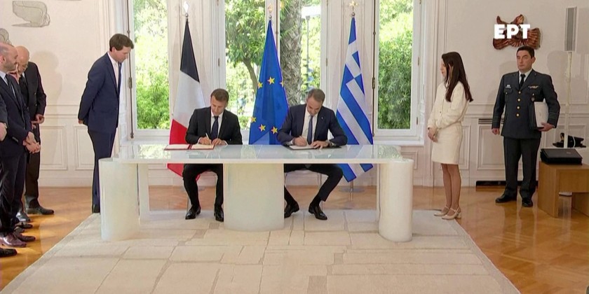 French President Emmanuel Macron and Greek Prime Minister Kyriakos Mitsotakis signed a strategic partnership on Saturday, in particular covering defense, on the second day of Macron's visit to Athens.  The deal mainly focuses on defense and broader cooperation.  The agreement is part of Macron’s 2-day visit to Greece.