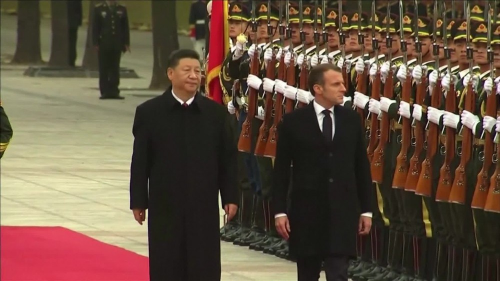 French President Emmanuel Macron attended a welcome ceremony in Beijing with his host Chinese President Xi Jinping on Wednesday. After the welcome ceremony, Macron and Xi sat down to a bilateral meeting where they pledged to boost ties. Macron also met with Xi in Shanghai on Tuesday, where he attended a major trade fair.
