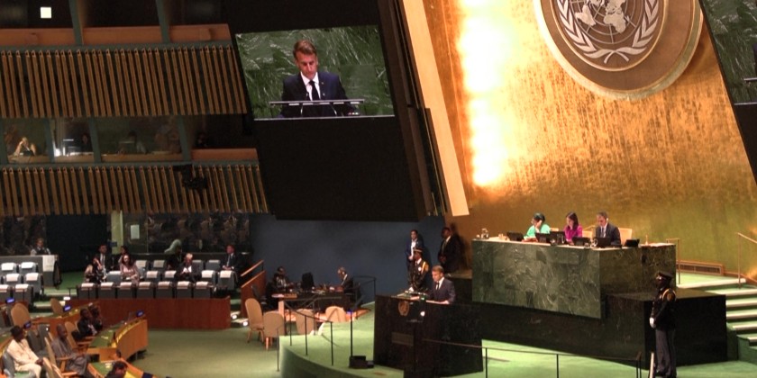 French President Emmanuel Macron warned Tuesday against allowing an approach of "survival of the fittest" to take hold in international relations as he addressed the UN General Assembly.