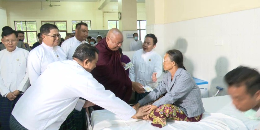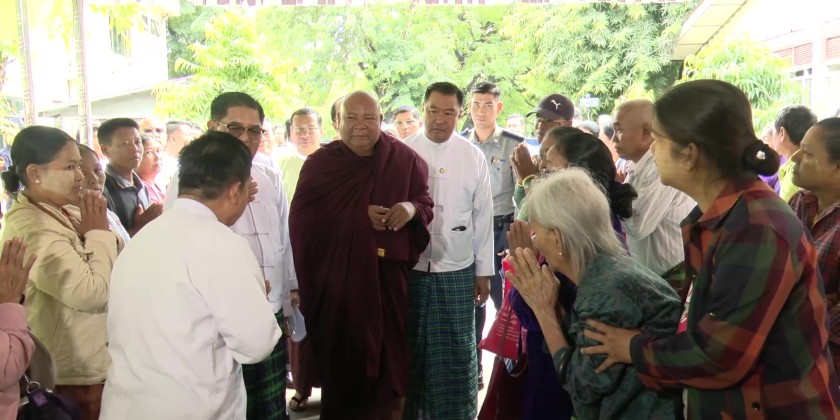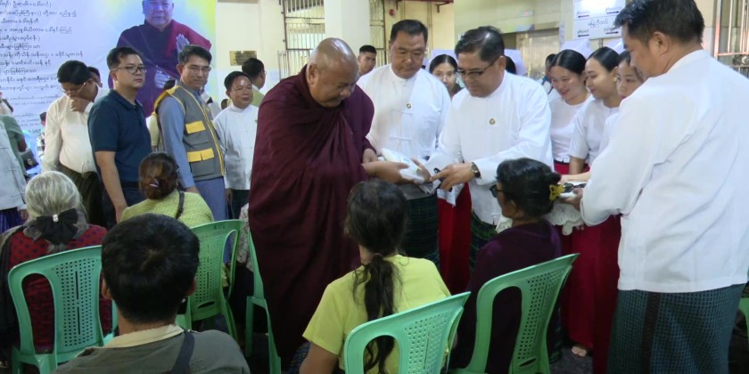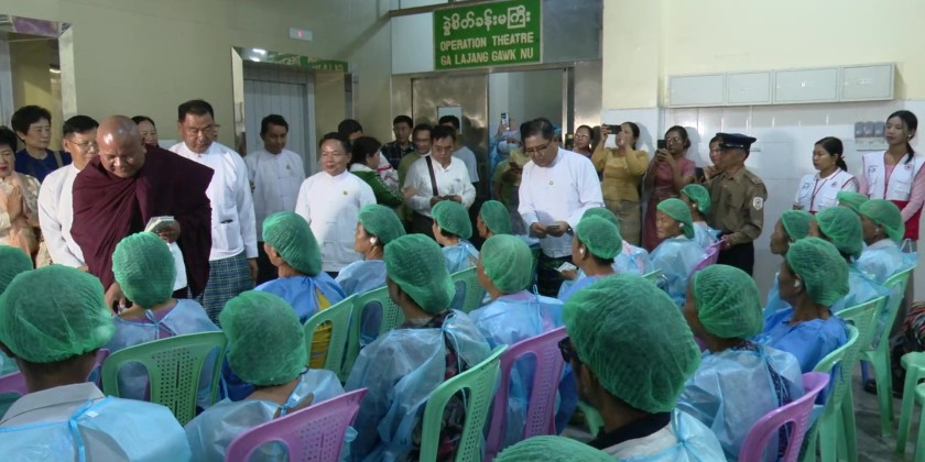 On the afternoon of October 19, free eye examinations and surgeries, offered as the Cakkhu Dāna (contribution of sight), provided to local residents suffering from eye diseases within the Kachin State took place at the 500-bed People's Hospital in Myitkyina. It was led by the Venerable Thephyu Kyaung Sayadaw Dr. Bhaddanta Paññājota, under the guidance of the Ministry of Health, with the support of the Kachin State Government and donations from well-wishers. The Venerable Thephyu Kyaung Sayadaw, Kachin State Chief Minister U Khet Htein Nan, and responsible officials attended the event. They warmly greeted and encouraged the local people who came to receive eye examinations and surgeries, and generously distributed snacks, purified water bottles, and lunch boxes.