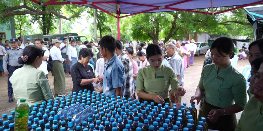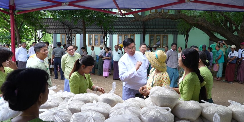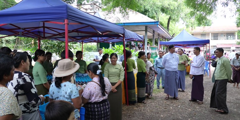 On the morning of June 23, Magway Region Chief Minister U Tint Lwin, accompanied by senior military officials from the Magway military station, region ministers, and relevant departmental officials, visited Myanmar Economic Bank where the Services are being provided to show support. During the visit, free medical treatment was provided to retired civil servants, and essential food items such as 3 pyi of rice and 1 viss of cooking oil per person were sold at subsidized prices.