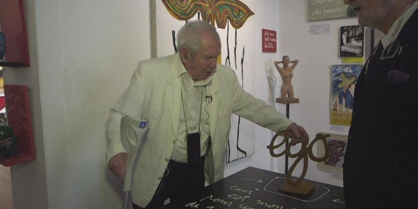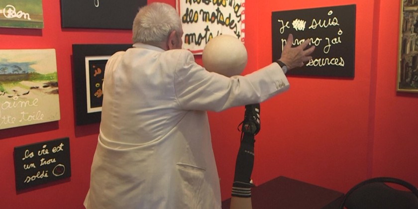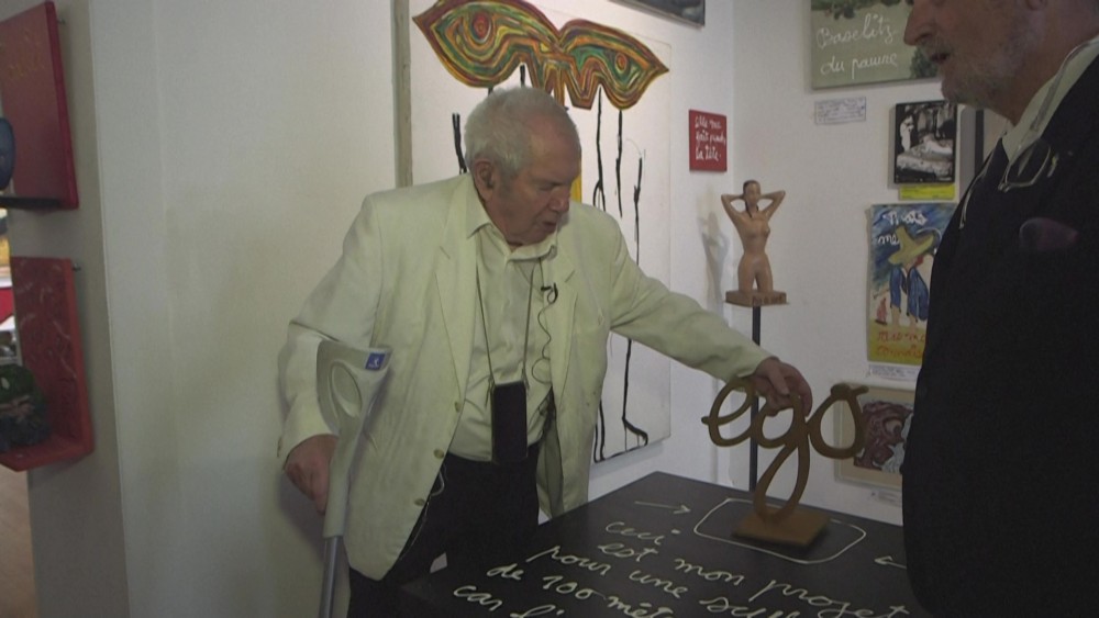 French artist Benjamin Vautier, also known simply as Ben, opens his exhibition "We are all crazy" at the Anatole Jakovsky International Museum of Naïve Art in Nice.