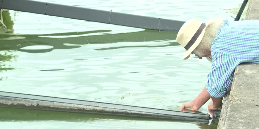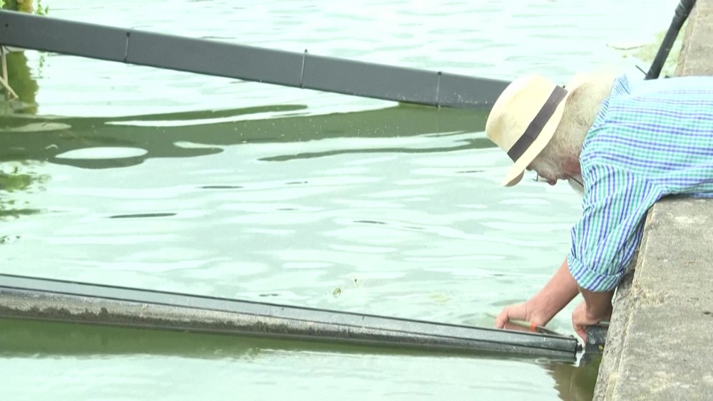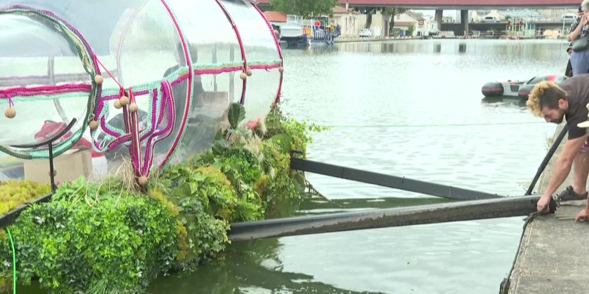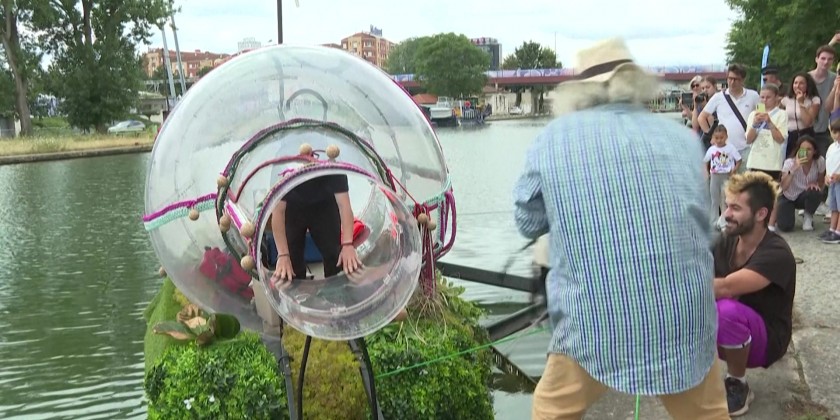 At the flagship site of the Paris Olympics, French artist Abraham Poincheval emerges from the giant bottle in which he had been trapped for 10 days. Inside, he is equipped with basic necessities such as food, water, and solar-powered electricity. The giant bottle also equipped with a compost toilet. He said the work addresses themes of privacy and isolation against the backdrop of the world’s largest sporting event.