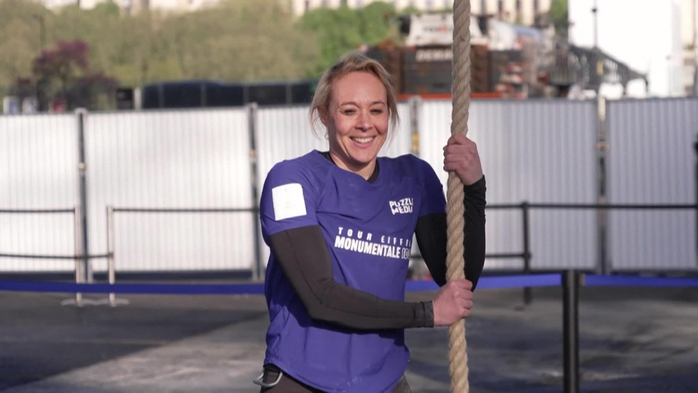 Anouk Garnier,34 years old, climbed 110 meters in 18 minutes to set a new high and raise money for cancer prevention and support. Garnier said she had prepared for a year for Wednesday’s challenge and was happy to see her family as she descended.