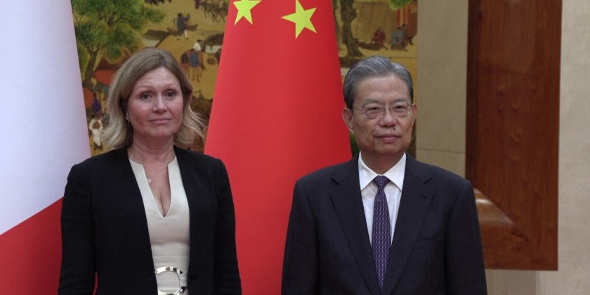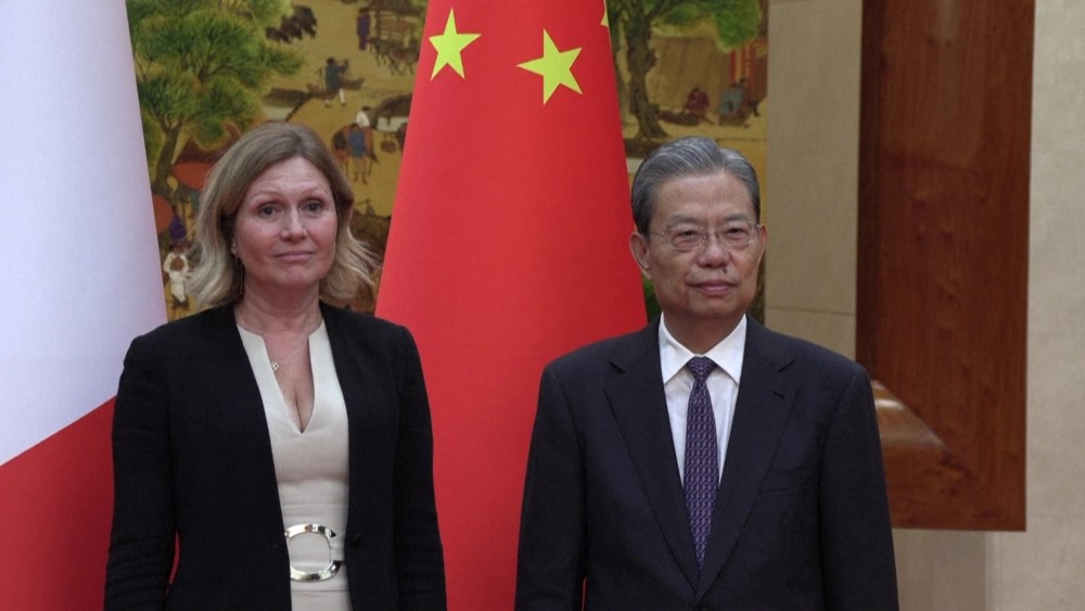 French National Assembly President Yael Braun-Pivet meets the Chairman of the Standing Committee of the National People's Congress of China Zhao Leji, in Beijing.