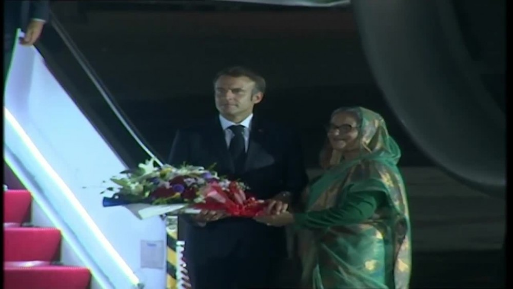 French President Emmanuel Macron has arrived in Dhaka at the invitation of Bangladesh Prime Minister Sheikh Hasina. Both Sheikh Hasina and Macron arrived in Dhaka separately after attending the G-20 Summit in New Delhi.