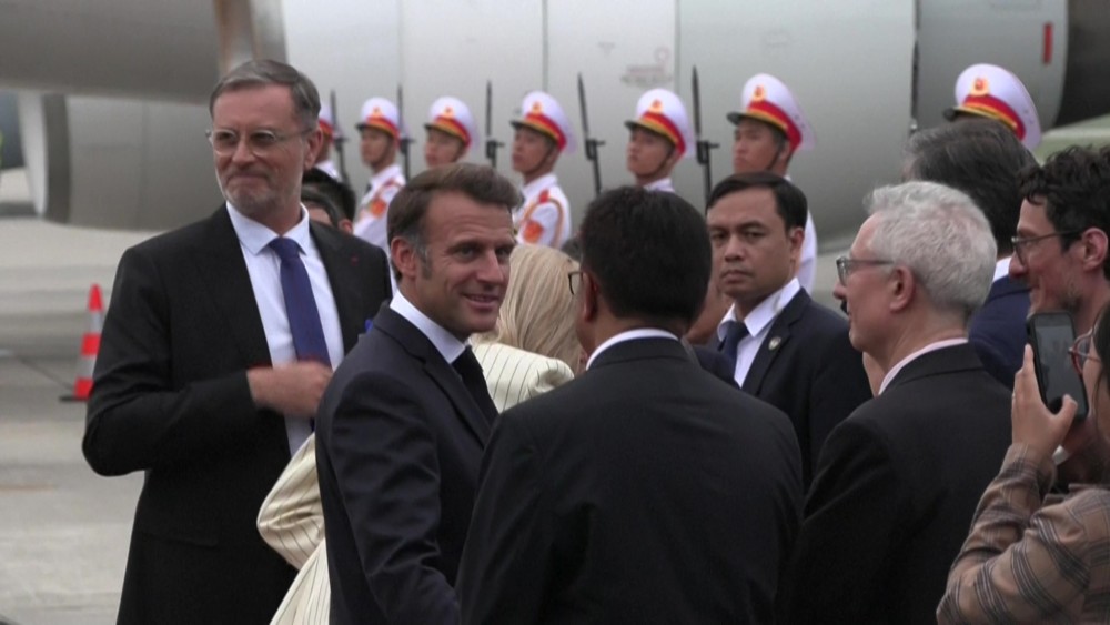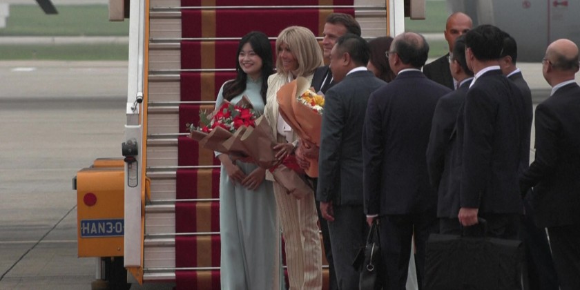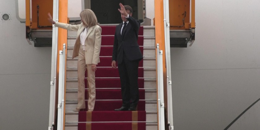 French President Emmanuel Macron and First Lady on Tuesday departed Hanoi to head to Indonesia, the second stop on a six-day Southeast Asia tour that also includes Singapore.