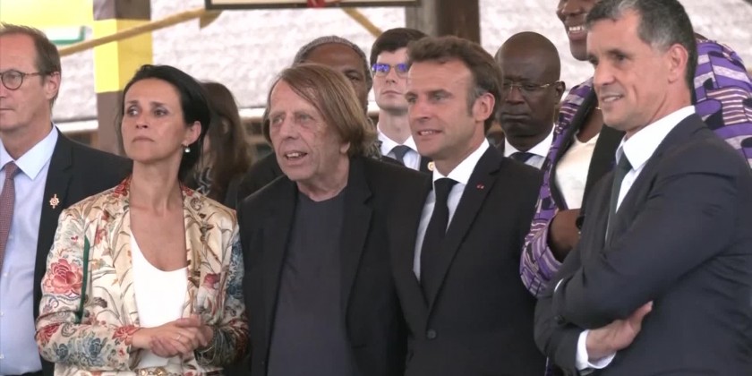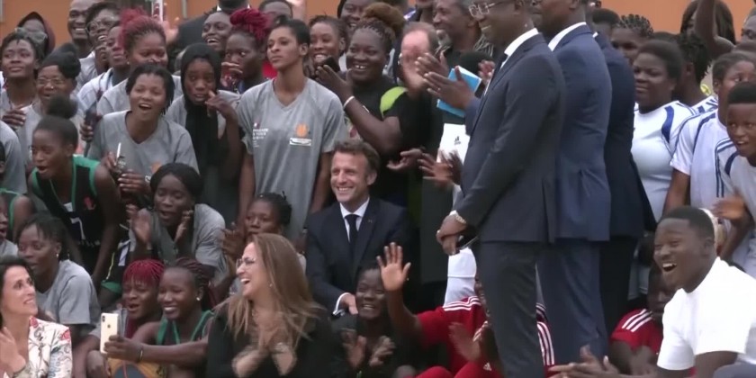 French President Emmanuel Macrontook time out from his meetings with Benin's leaders to kick around a football in the capital, Cotonou.