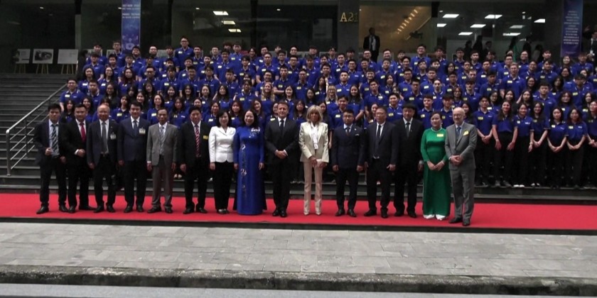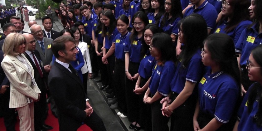 French President Emmanuel Macron on May 27th visited Hanoi's University of Science and Technology and met students studying at the institution.