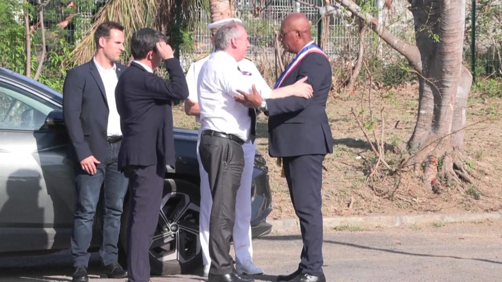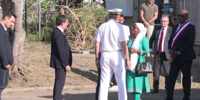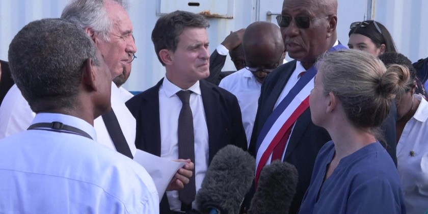 Prime Minister of France Francois Bayrou arrived at the Petite Terre desalination plant, which was damaged during Cyclone Chido and is now partially restarted.