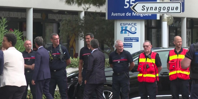 France's Prime Minister Gabriel Attal and Interior Minister arrived in La Grande-Motte in southern France where a man draped in a Palestinian flag was suspected of setting fires at a synagogue and triggering an explosion that injured a police officer.