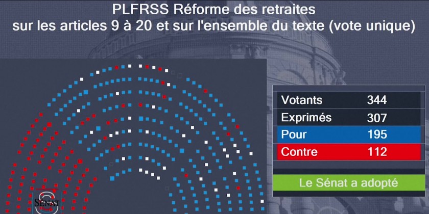 The French Senate on Saturday evening voted in favour of the government's controversial pension reform bill.