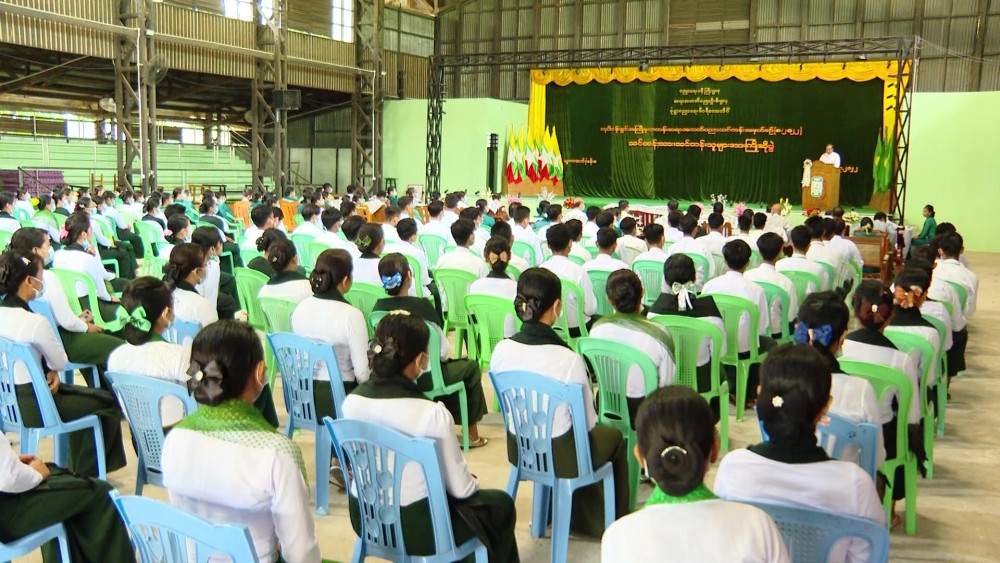 The ceremony was opened with the song “Mingalabar” by the trainees of the Degree College. At the event, the Sagaing Region Chief Minister U Myat Kyaw said that during the course, the trainees will learn education subjects, teaching methods of each subject, physical education, art, industry, agriculture and domestic science for having high morals and excellent teaching.