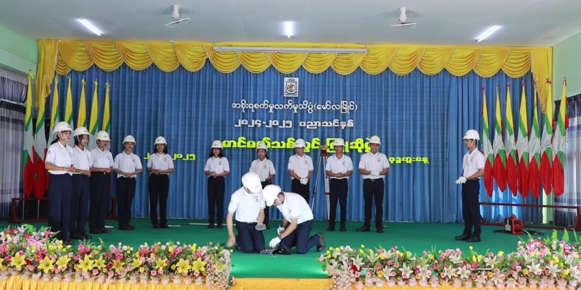 The principal, Dr. Phyo Wei Lin, then presented information related to the institute. Students from the Government Technical Institute (Mawlamyine) entertained the audience with song performances, dances and traditional ethnic dances.