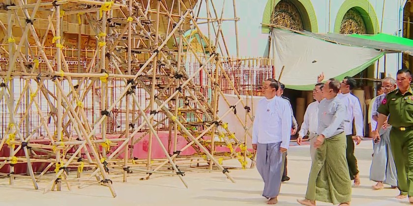 Furthermore, the Region Chief Minister and responsible officials visited the historic Su Taung Pyae Pagoda in Monywa to observe the ongoing offering of the full golden robe to the pagoda. They also inspected the newly constructed and completed Ahrun Khan (prayer hall) within the pagoda compound, as well as the completed offering of the full golden robe and the completed renovations at the historic Yan Aung Myin Pagoda.