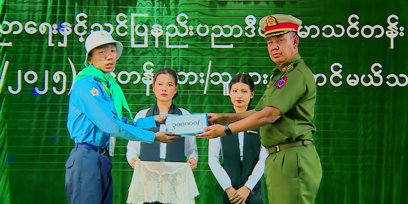 Subsequently, the Region Minister for Security and Border Affairs presented cash award of 300,000 Kyats to Maung Zin Myo Aung, a Lu Yay Chun Outstanding Students from the 2024-2025 Education Degree College level. The Region Minister for Transport also presented 100,000 Kyats to the Principal of Monywa Education Degree College. The Principal of Monywa Education Degree College then delivered a welcome address.