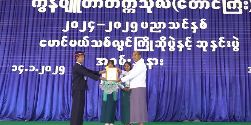 Following this, the Chief Minister, along with state ministers, the State Advocate General, and the secretary of the state government, awarded prizes to outstanding students. The students performed traditional Shan ethnic traditional dances (Toe Nayar) and Pa-O ethnic traditional dances.