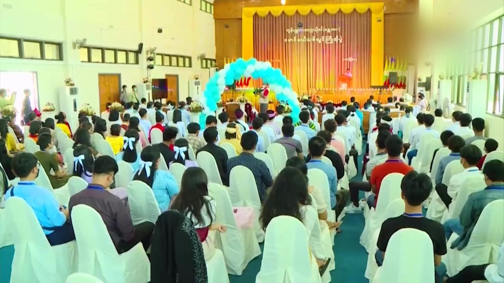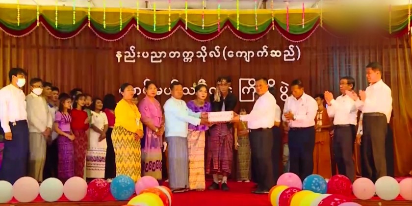 The chief minister then viewed the performances of the students with traditional dances and provided 2.6 million Kyats for the fresher welcome ceremony and sports wares for the improvement of sports standards in the universities.