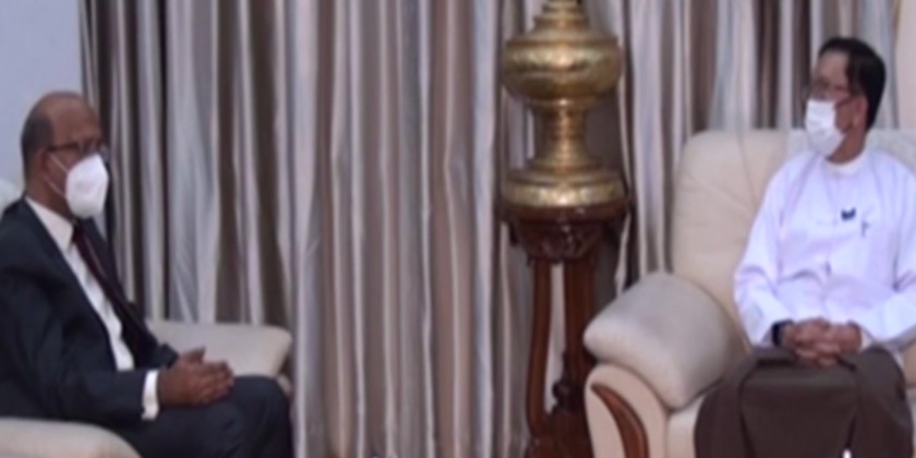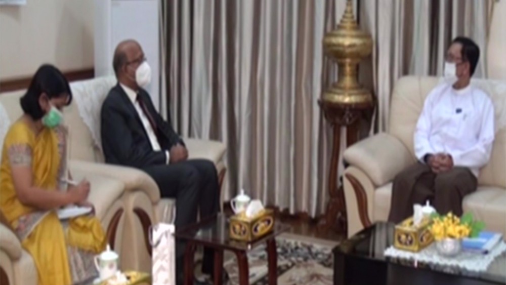Union Minister for Planning and Finance U Win Shein received Indian Ambassador to Myanmar Mr Vinay Kumar at the Ministry on Thursday. They exchanged views on financial cooperation between the two countries, the development of projects funded by Indian loans, the possible situation of the rupee/ kyat to be used in trade between the two countries and prospects for future cooperation.