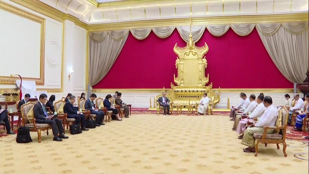 President U Min Aung Hlaing received a Chinese delegation led by Member of the Political Bureau of the Communist Party of China (CPC) Central Committee and Foreign Minister Mr. Wang Yi in Nay Pyi Taw on Saturday.