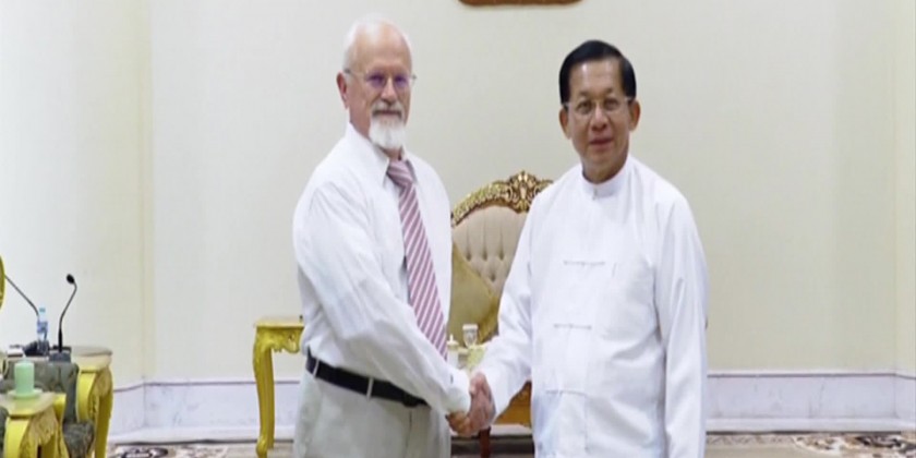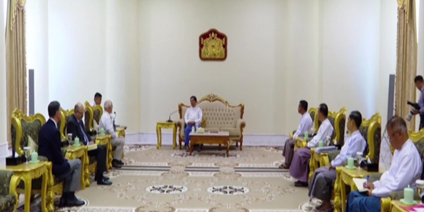 Chairman of the State Administration Council Prime Minister Senior General Min Aung Hlaing received a delegation led by Vice Chairman of Russia-Myanmar Association for Friendship and Cooperation Mr. Anatoly Bulochnikovat his office in Nay Pyi Taw on Friday.