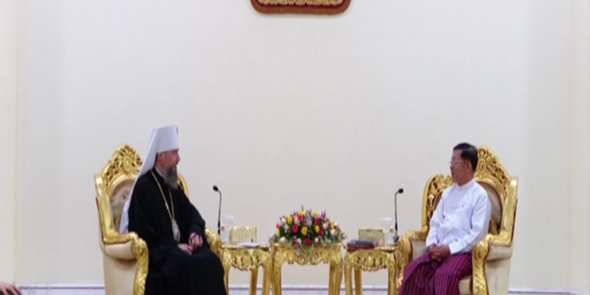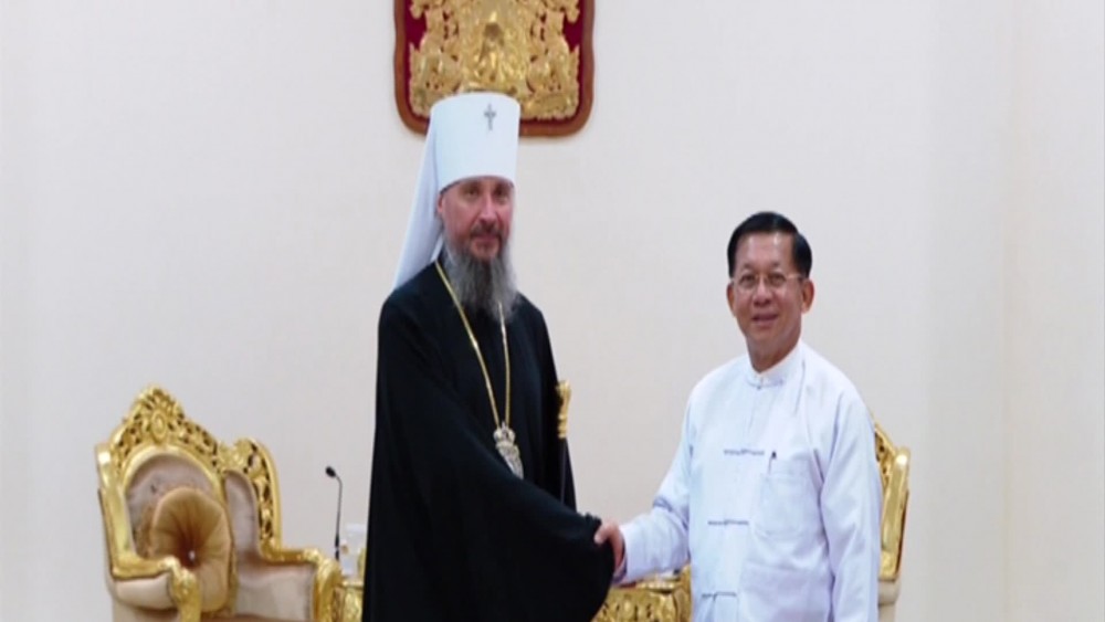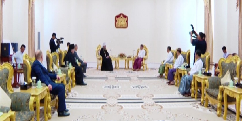 Chairman of the State Administration Council Prime Minister Senior General Min Aung Hlaing received a Russian delegation led by Metropolitan of Singapore and South-East Asia His Eminence Sergiyat his office in Nay Pyi Taw on Thursday.