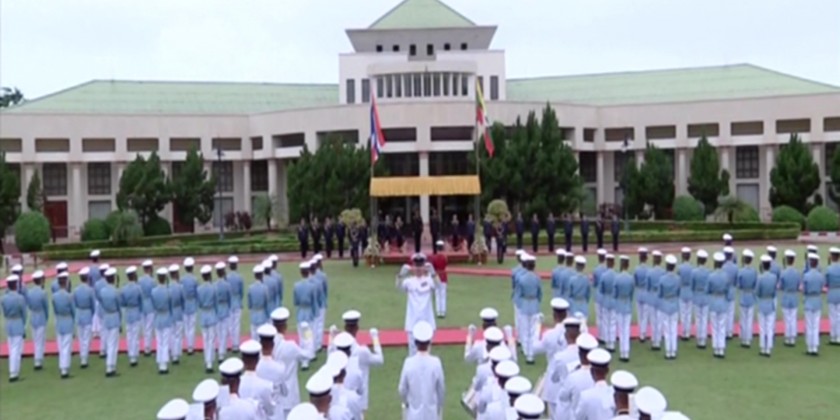 On Friday morning, the Air Chief Marshal was ceremonially welcomed by the Commander-in-Chief (Air) at the Bayint Naung Avenue in Nay Pyi Taw. First, they received the honor of guards’ salute and inspected the guards of Honor.