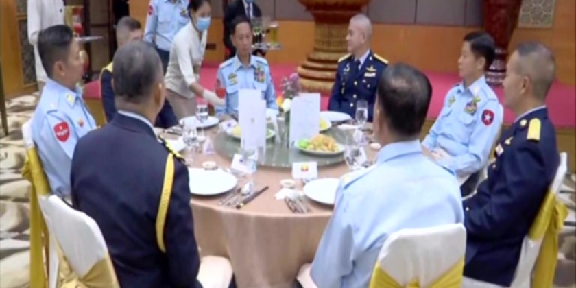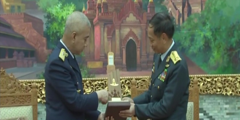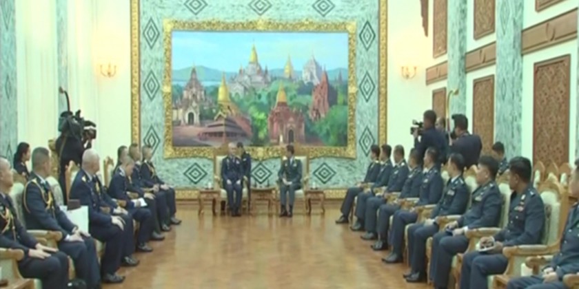 Then, General Tun Aung received the visiting Royal Thai Air Chief and cordially discussed on reciprocal friendly tours, sending trainees, boosting relations between the two Air forces, technical information exchange, humanitarian assistance and disaster relief HADR. Next, General Tun Aung hosted a luncheon in honour of the visiting Air Chief Marshal, before leaving for Nay Pyi Taw airport.