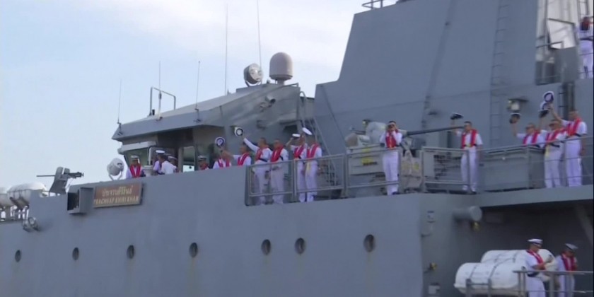 Royal Thai Naval Vessel HTMS Prachuap Khiri Khan (OPV-552) left Thilawa Port in Yangon on Sunday evening after paying a goodwill visit to Myanmar.