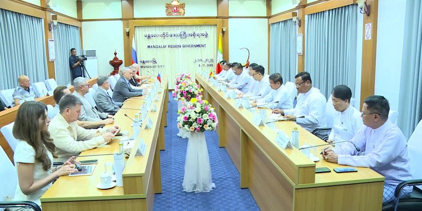 The delegation met with Chief Minister U Myo Aung and discussed cooperation in social, economic, education, health, tourism, and trade sectors. They also talked about plans to establish a sister-city relationship between Mandalay and Novosibirsk, and future collaboration projects from 2026 to 2028.
