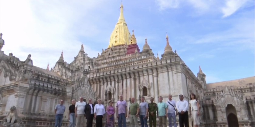 The delegation then visited the Bagan Archaeological Museum, where they learned about heritage conservation efforts. They also explored famous temples including Shwezigon Pagoda, Ananda Temple, Myinkaba Gubyaukgyi Temple, and local lacquerware workshops. The visit concluded with sunset viewing at Dhammayangyi Temple.