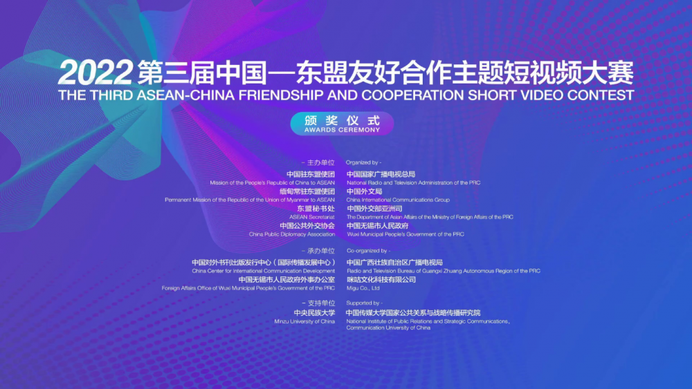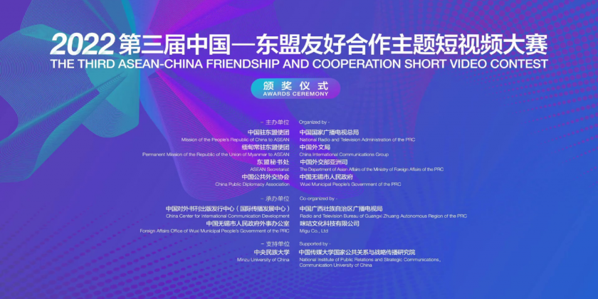 The 3rd ASEAN-China Friendship and Cooperation Short Video Contest was jointly organized by the China’s Mission to ASEAN, the Permanent Mission of Myanmar to ASEAN, the ASEAN Secretariat, the Wuxi Municipal Government and other government departments and organizations.