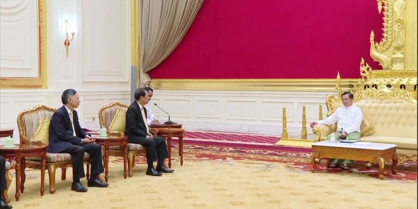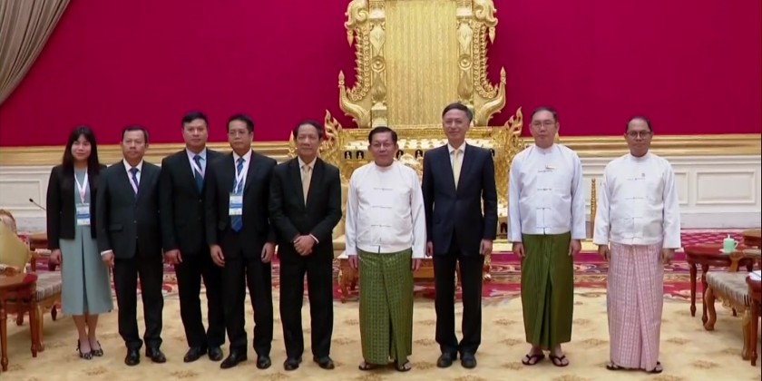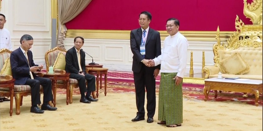 A delegation led by the Special Envoy of the ASEAN Chair on Myanmar Mr. Alounkeo Kitikhoun, and the Director-General of the Department of Southeast Asia, South Asia and South Pacific Affairs, Ministry of Foreign Affairs of Viet Nam paid a courtesy call on President Min Aung Hlaing at the Presidential Guest House in Nay Pyi Taw on Friday evening.