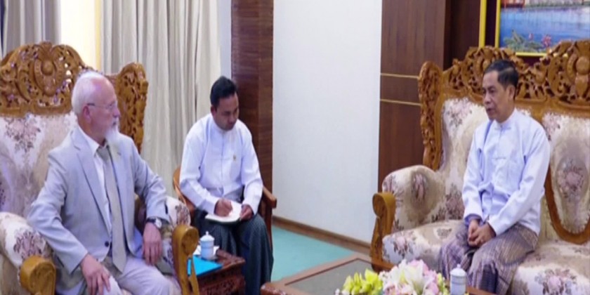 Union Minister for International Cooperation U Ko Ko Hlaing received the delegation headed by Mr. Anatoly Bulochnikov,SeniorVice-President of the Russia-Myanmar Association of Friendship and Cooperation at the Union Minister’s Office in Nay Pyi Taw on 28 June.